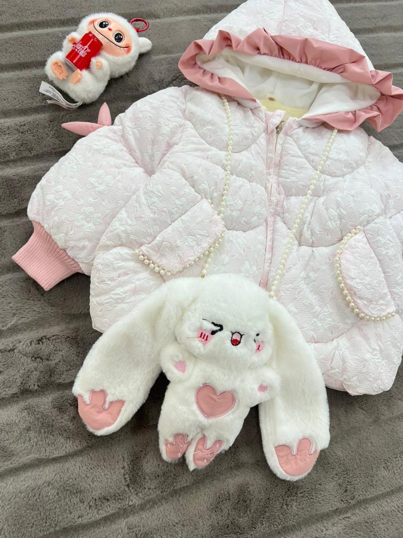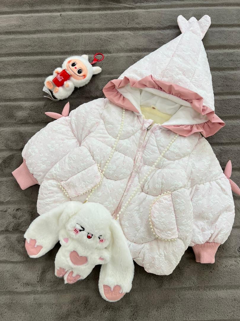 کاپشن دخترانه طرح خرگوشی با رویه لطیف و خز ضدحساسیت کد ۱۱۷