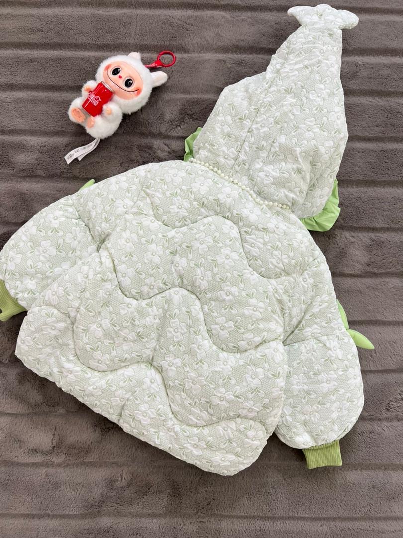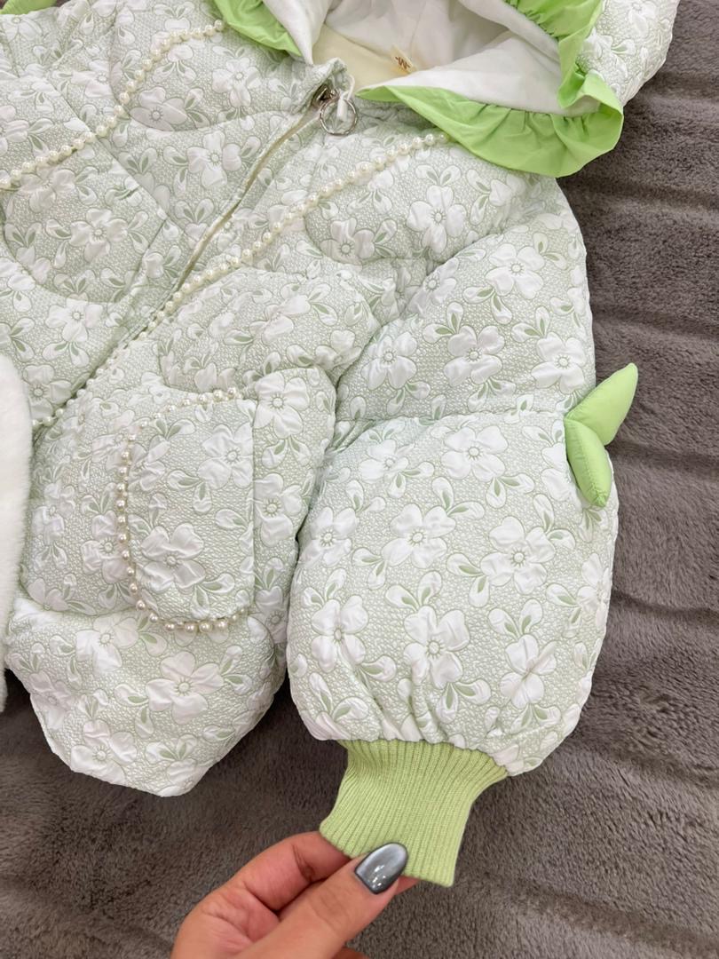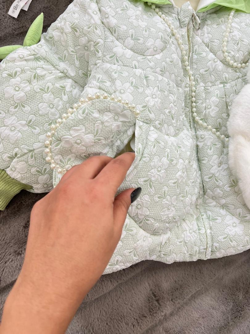 کاپشن دخترانه طرح گل فیروزه ای با رویه ضدآب و خز لطیف و نرم کد ۱۳۹