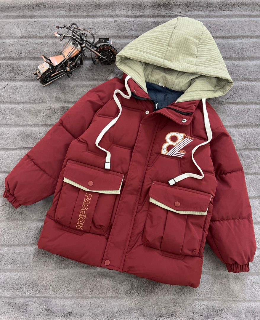 کاپشن پسرانه قواره بزرگ با رویه برزنتی و داخل خز طرح R3 كد ١٩٠
