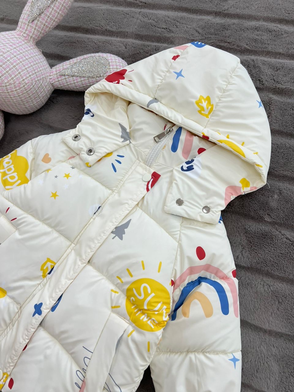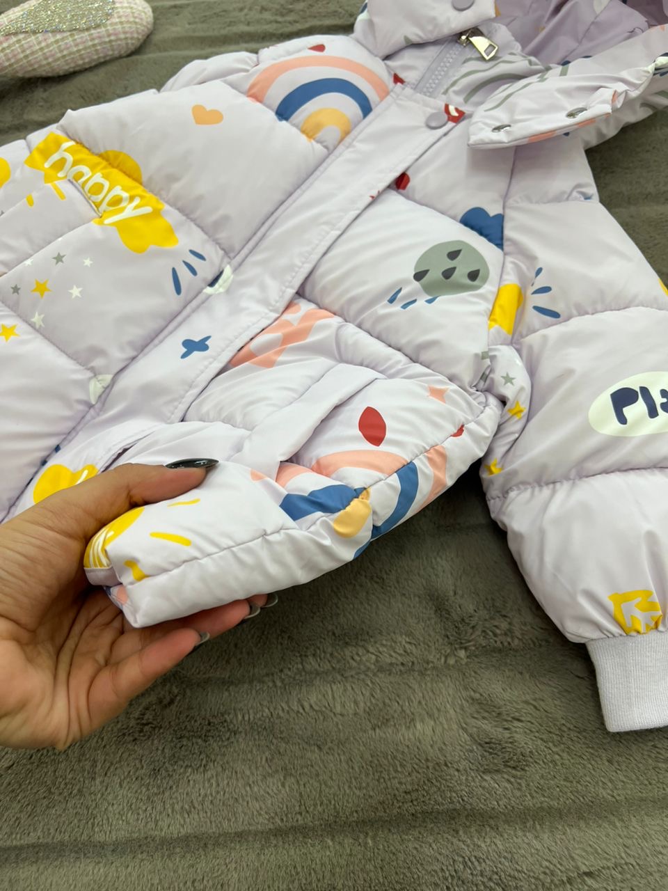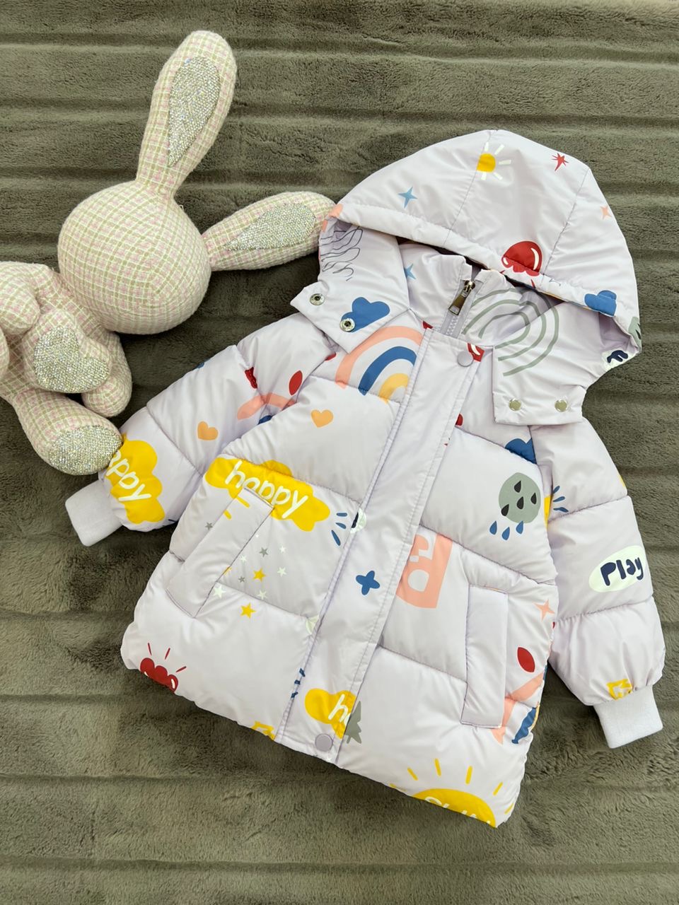کاپشن دخترانه طرح happy همراه با کیف labubu کد ۱۸۹