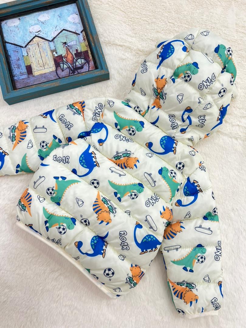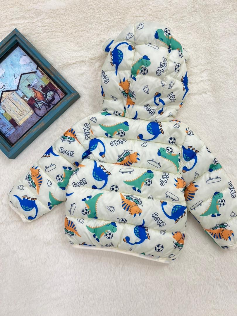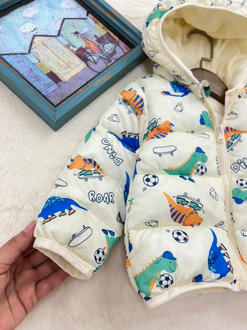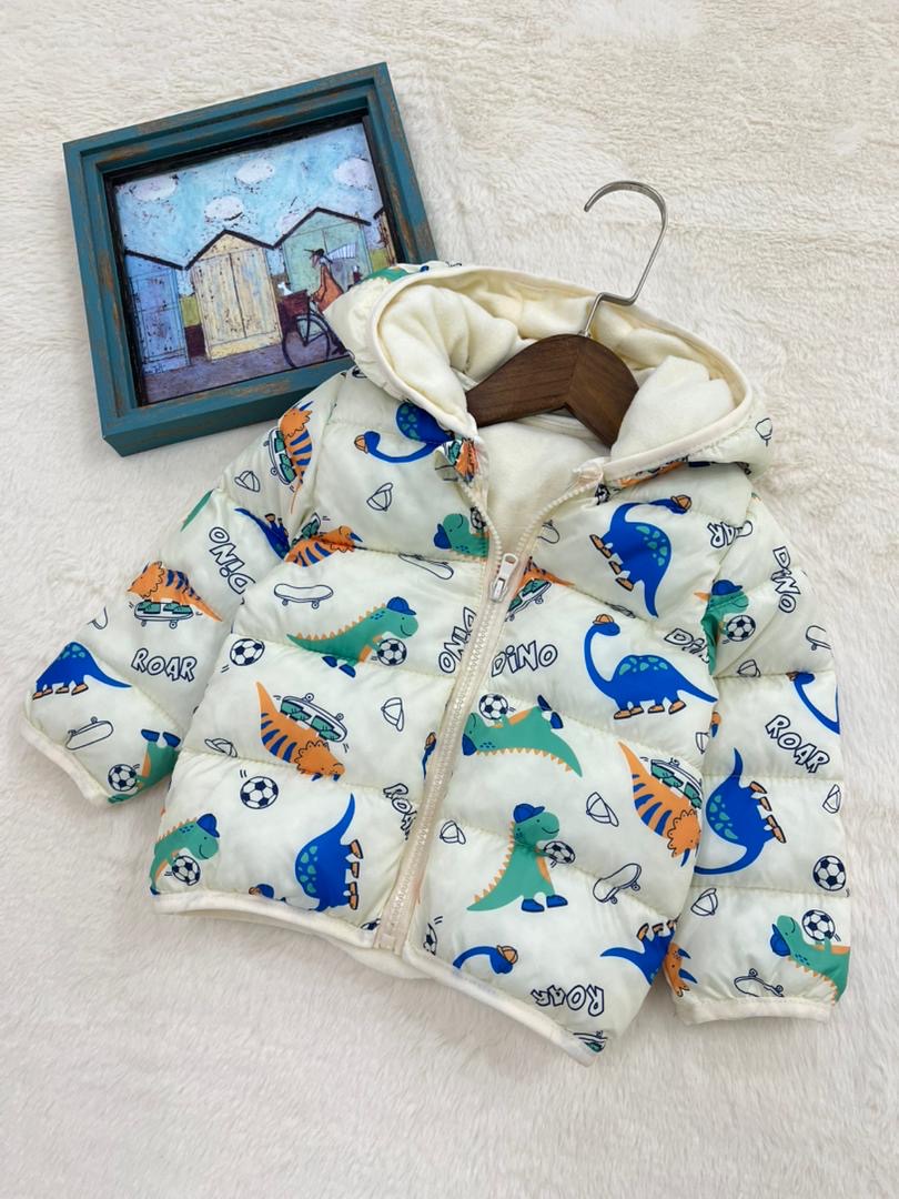 - کاپشن نقلی پسرانه طرح دایناسور فوتبالیست با رویه کاملا ضدآب و داخل خز کد ۲۱۹