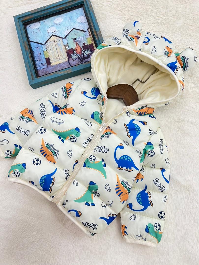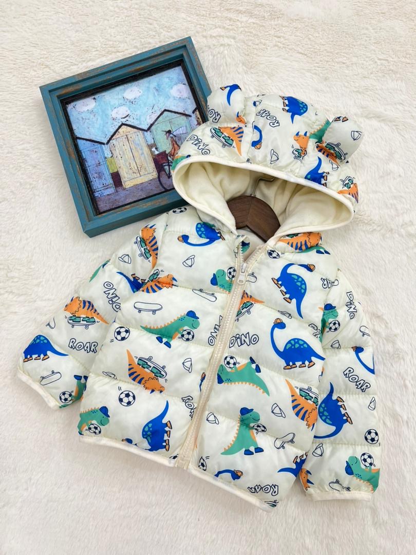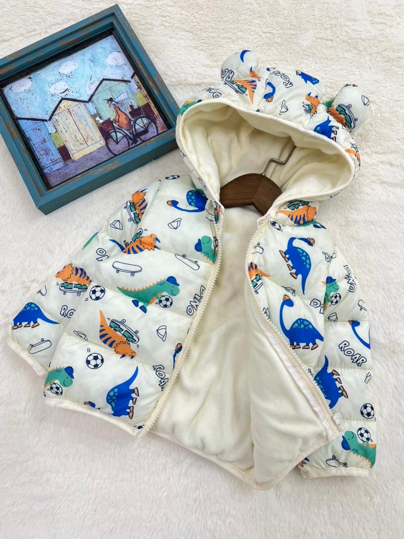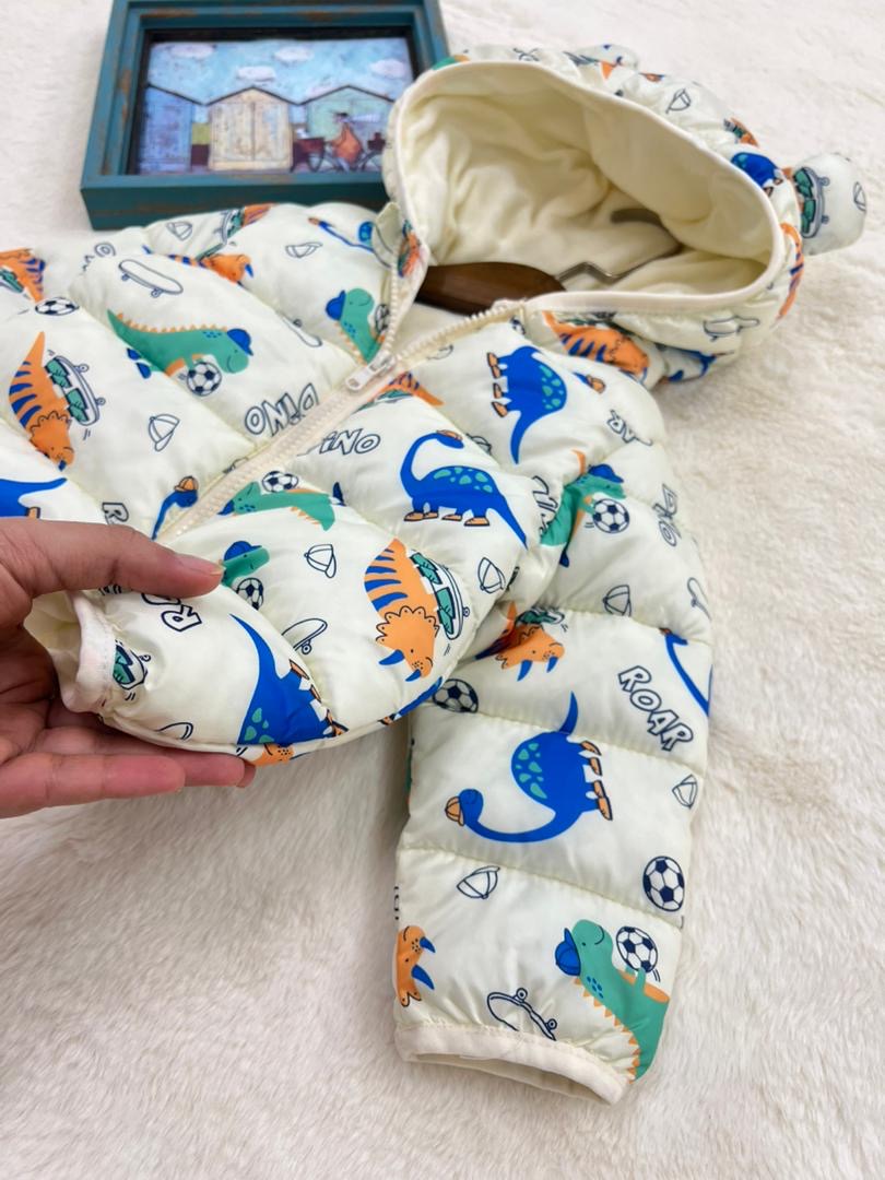 - کاپشن نقلی پسرانه طرح دایناسور فوتبالیست با رویه کاملا ضدآب و داخل خز کد ۲۱۹