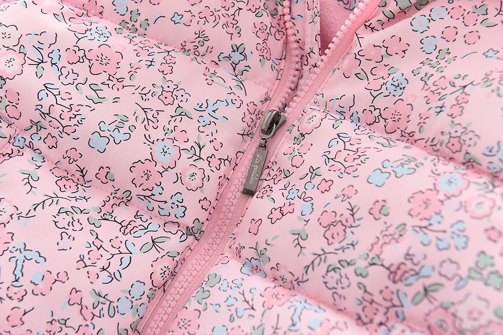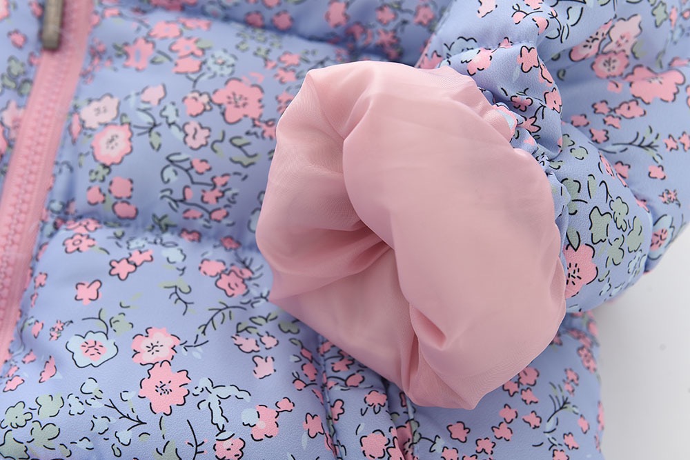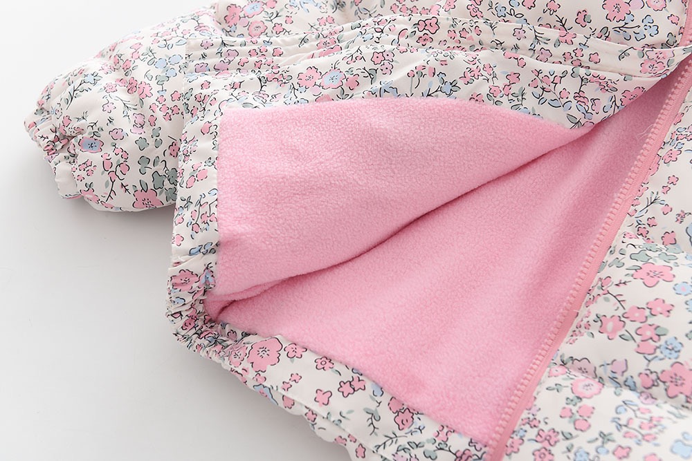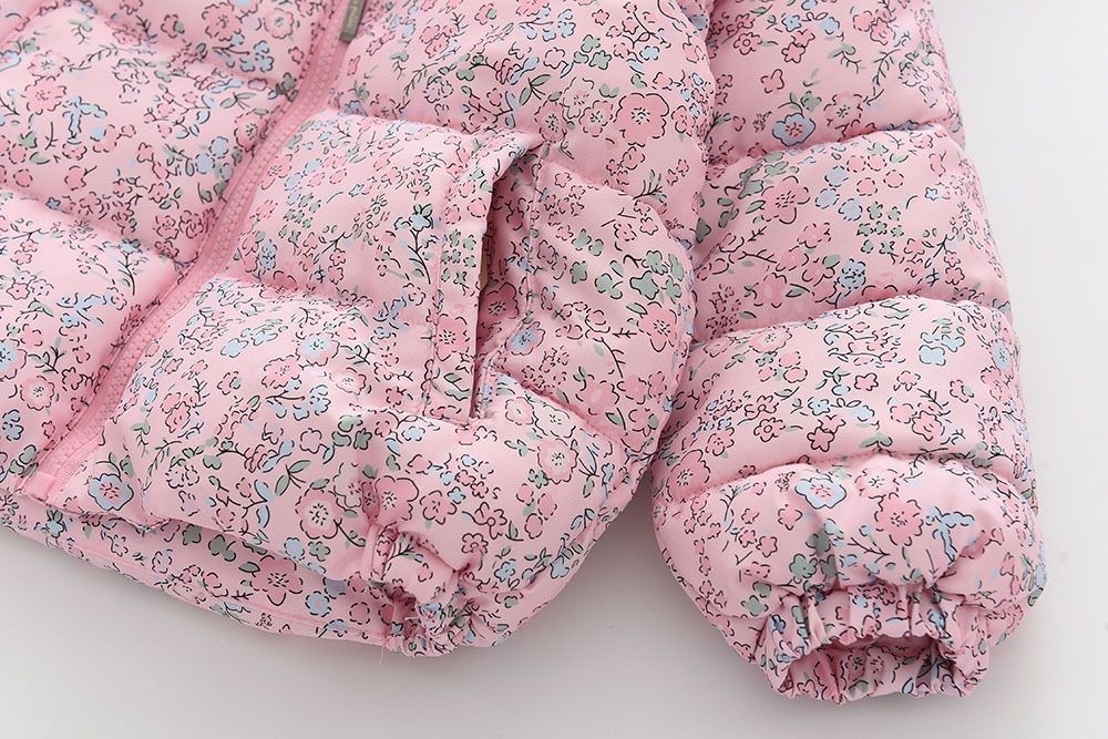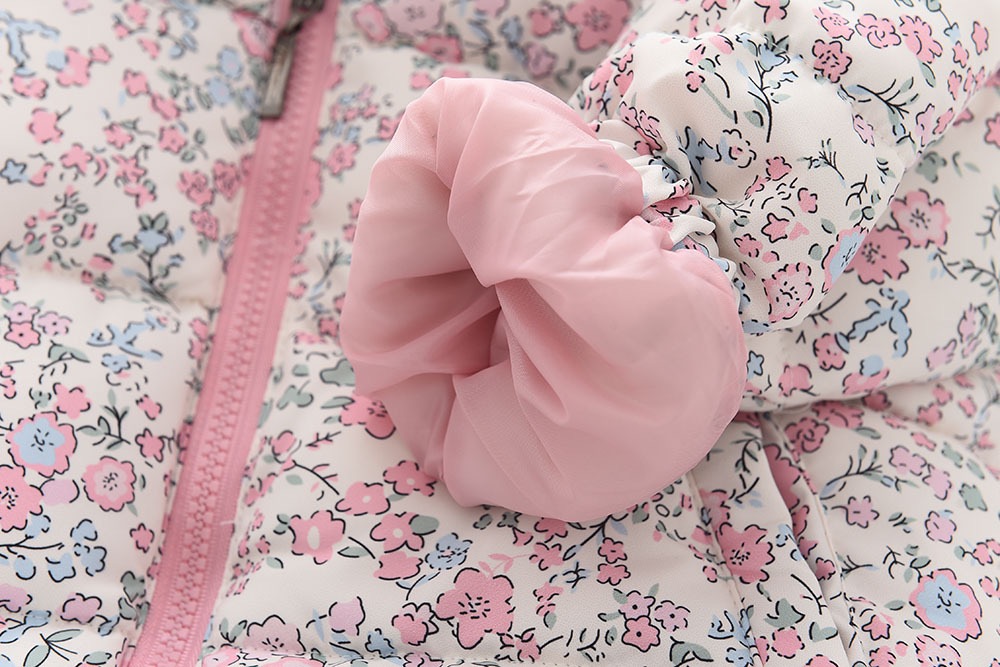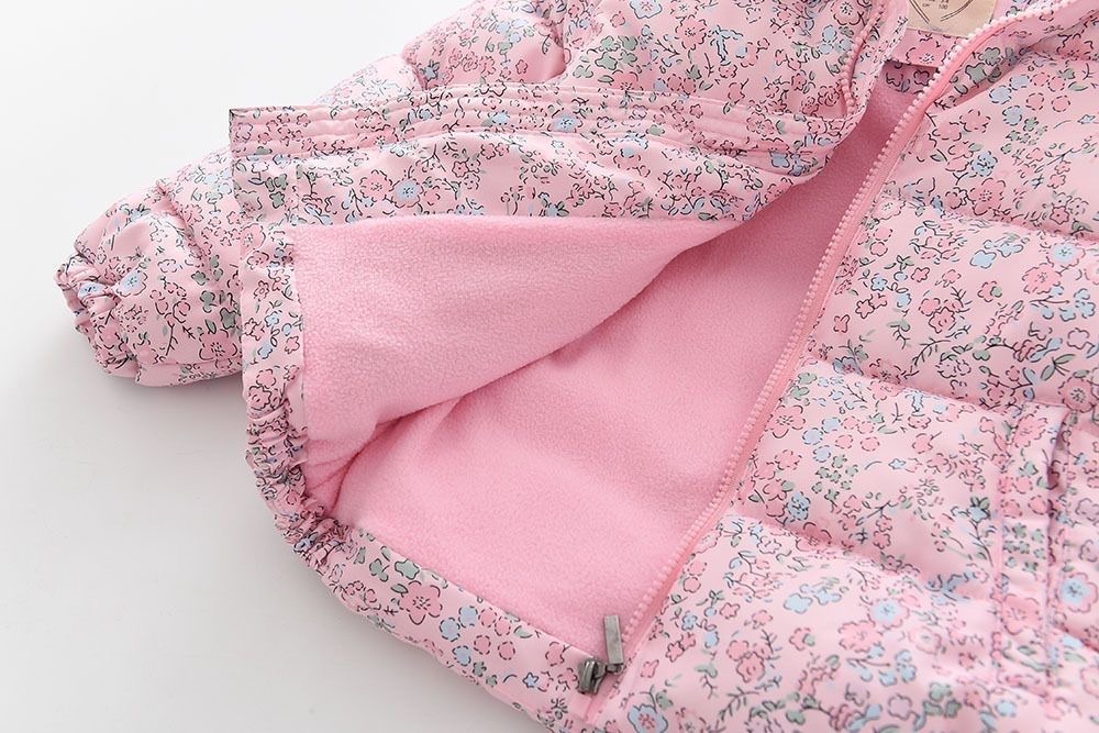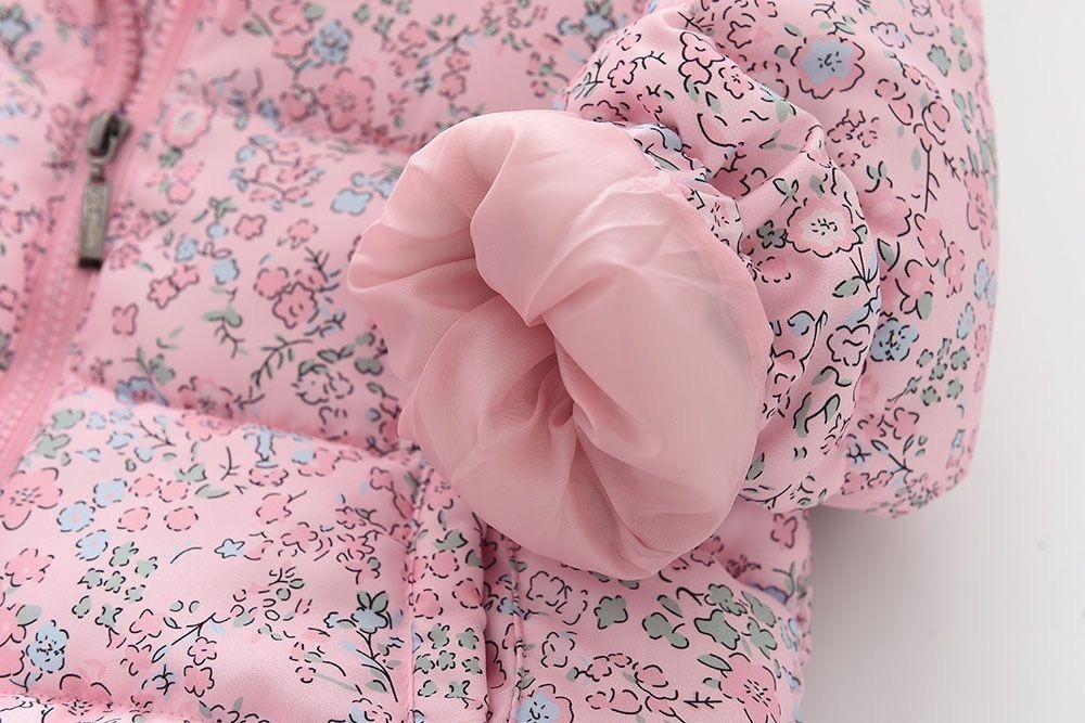 - کاپشن دخترانه وارداتی طرح گل ریز میخک با رویه کاملا ضدآب و داخل خز کد ۲۲۷