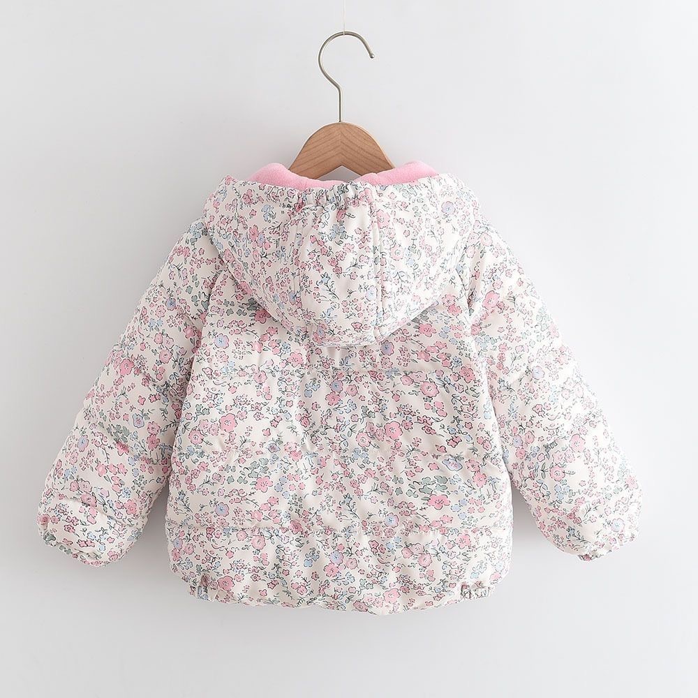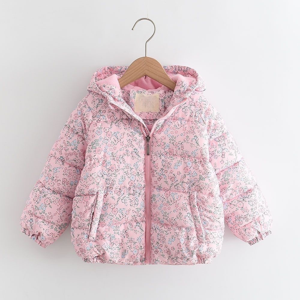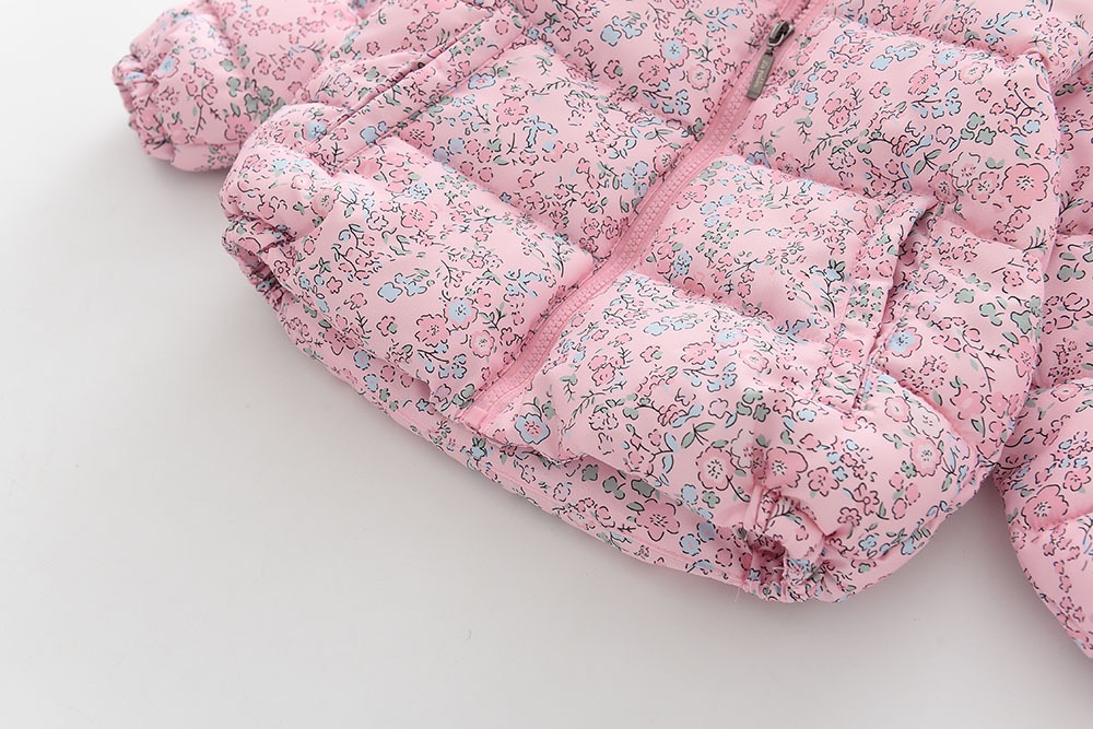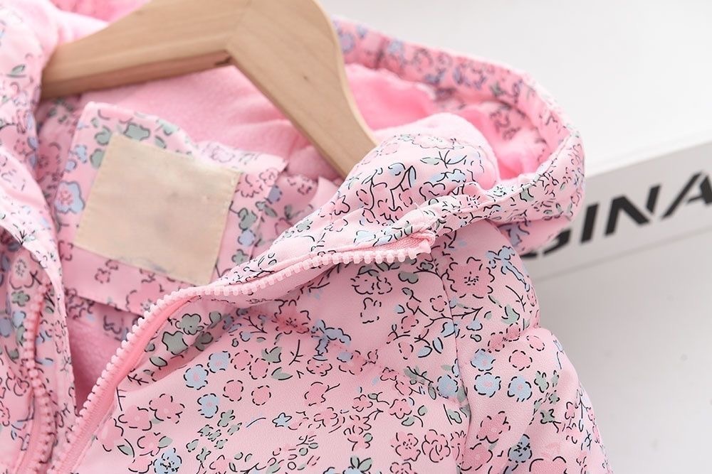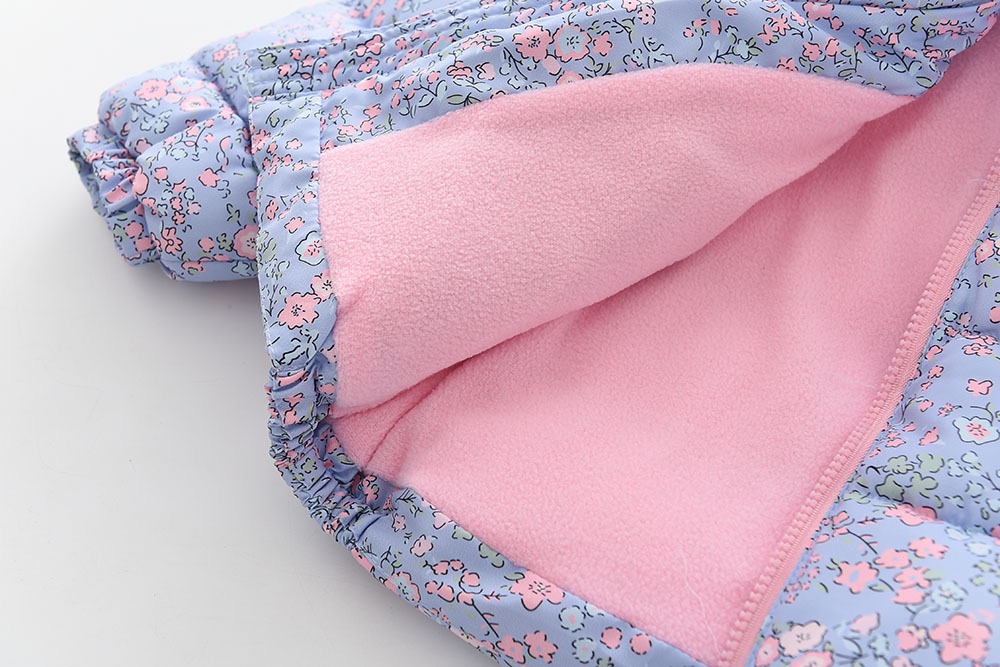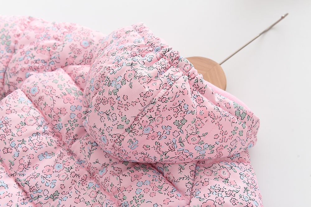 - کاپشن دخترانه وارداتی طرح گل ریز میخک با رویه کاملا ضدآب و داخل خز کد ۲۲۷