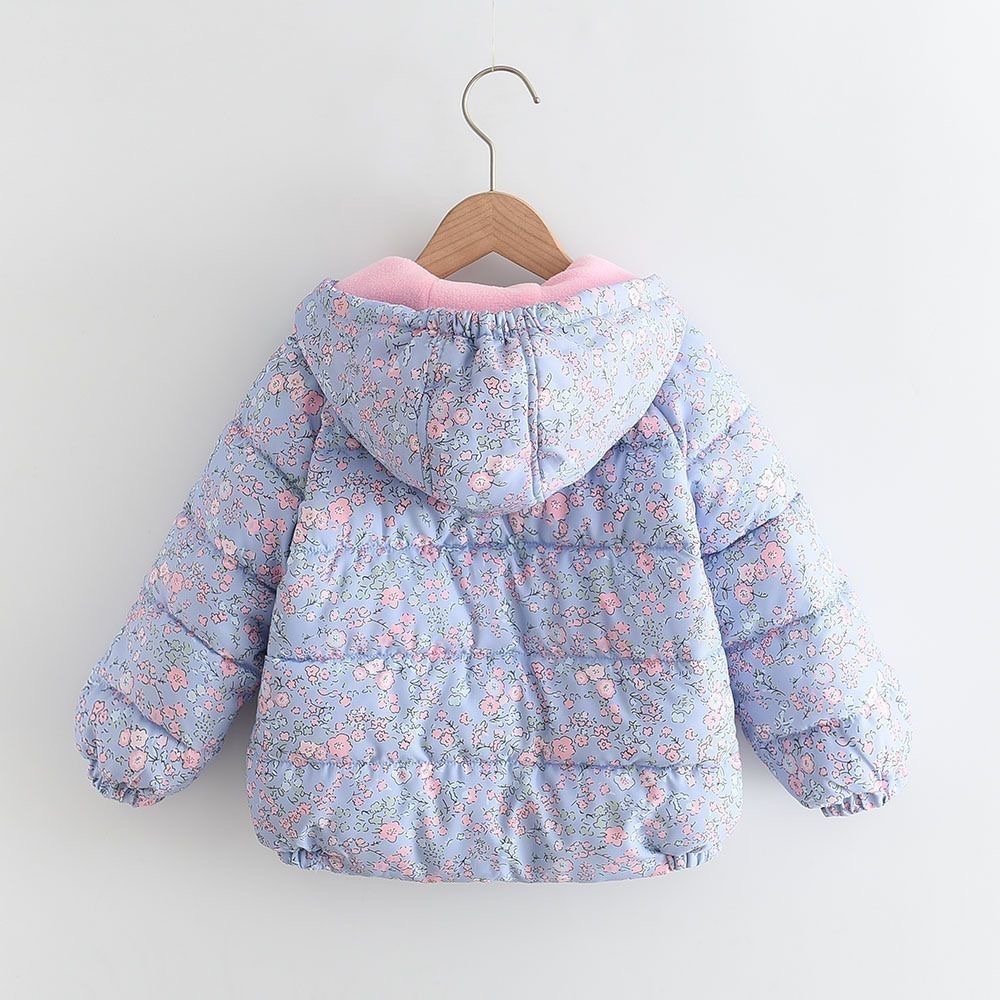 کاپشن دخترانه طرح گل فیروزه ای با رویه ضدآب و خز لطیف و نرم کد ۱۳۹